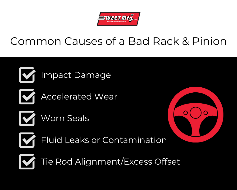Racing-specific rack and pinion systems should operate smoothly even under extreme conditions. One of the following might indicate an issue: